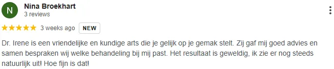 Dokter Irene is een top beoordeelde kliniek in Delft.